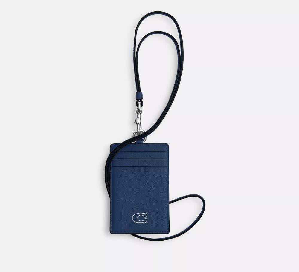 تعليقة بطاقات اي دي هولدر لنياردمن الجلد الفاخر باللون الازرق.تباع مع علبة وكيس كرت اهداء.فتحتين من الامام للبطاقات.فتحة شفافة من الخلف لاظهار البطاقة.7 سم * 10 سمId Lanyard In Signature CanvasCOLOR: IM/KHAKI/CANYON MULTI