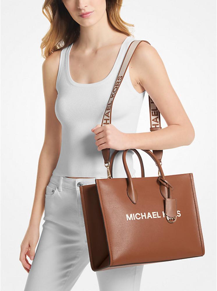 حقيبة توت كبيرة من مايكل كورس باللون البني مصنوع من الجلد الطبيعي