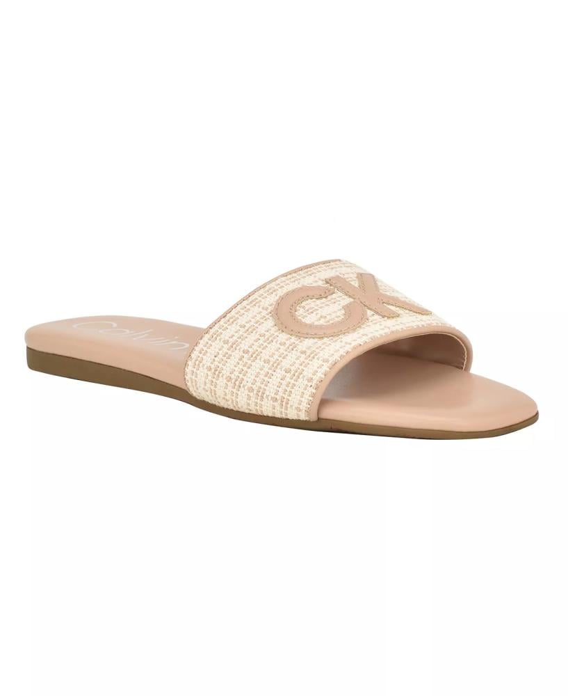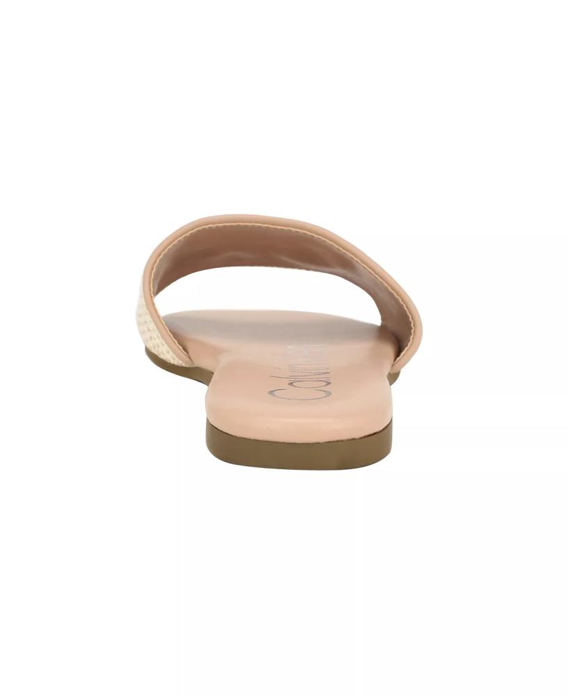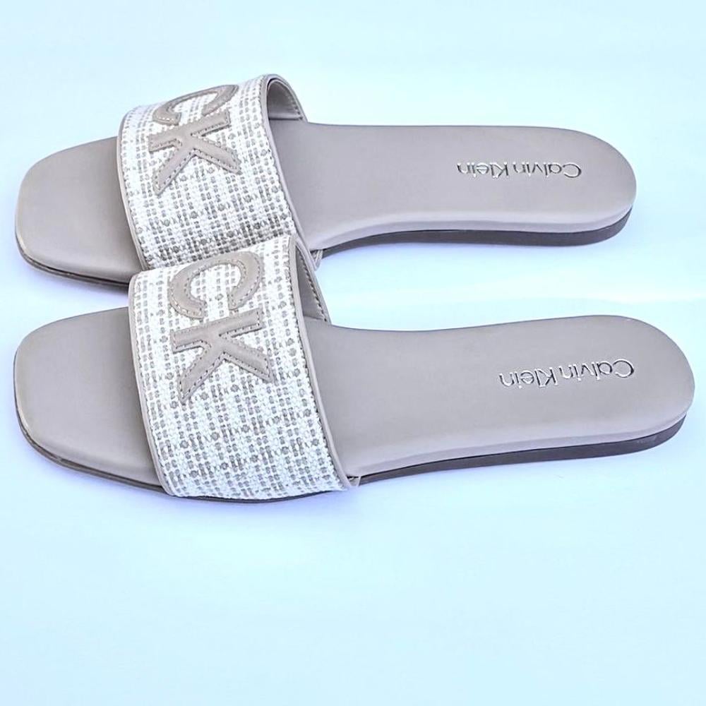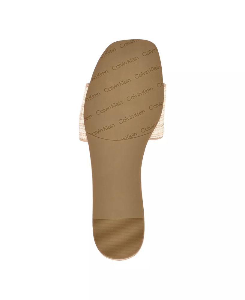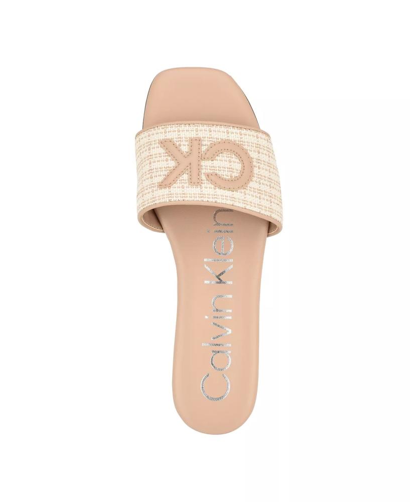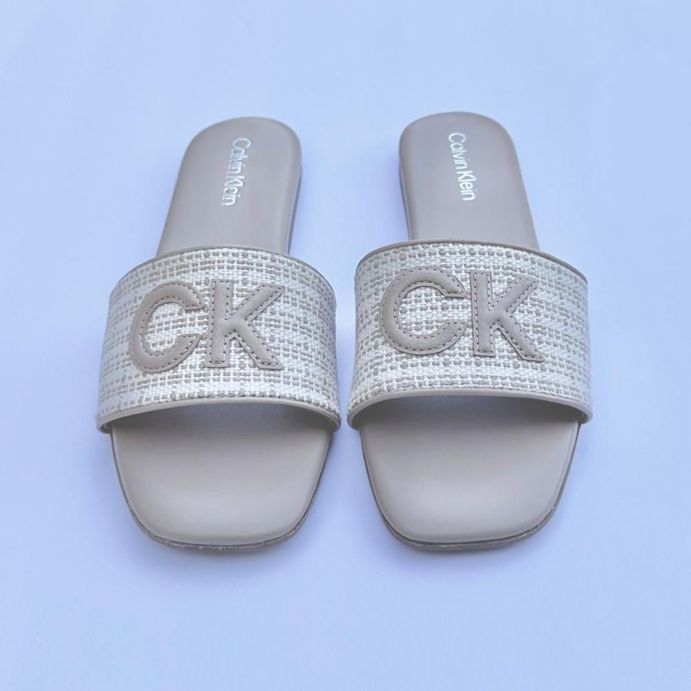 شوز فلات من كالفن كلاين جلد باللون البيج مع لوقو الماركة